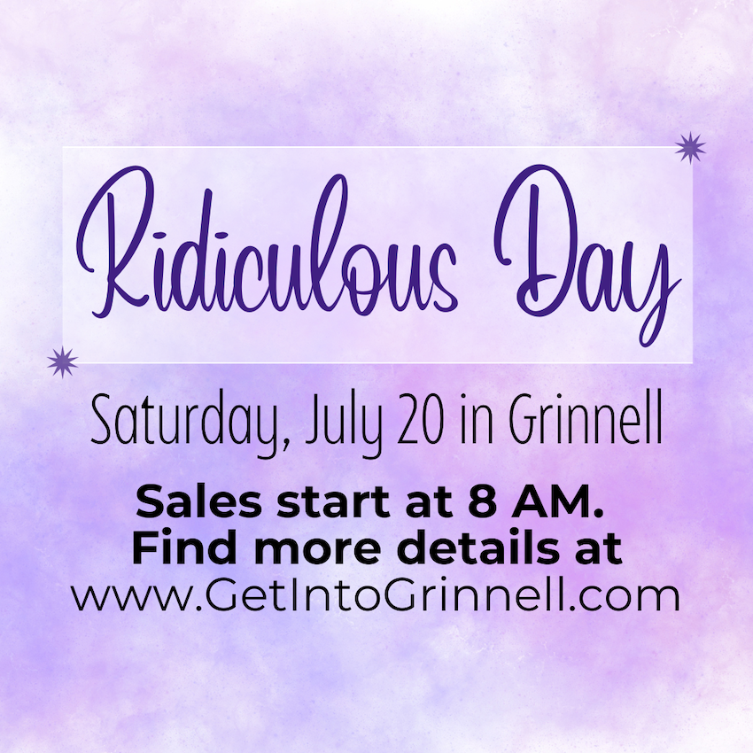 GRINNELL, IA – Grinnell retailers are hosting their annual Ridiculous Day sidewalk sales on Saturday, July 20. Sales begin at 8 AM and many stores will be open into the afternoon. Main Street in downtown Grinnell will be closed until 3 PM to accommodate street vendors, live music and mobile eateries. The Grasshoppers, a local […]